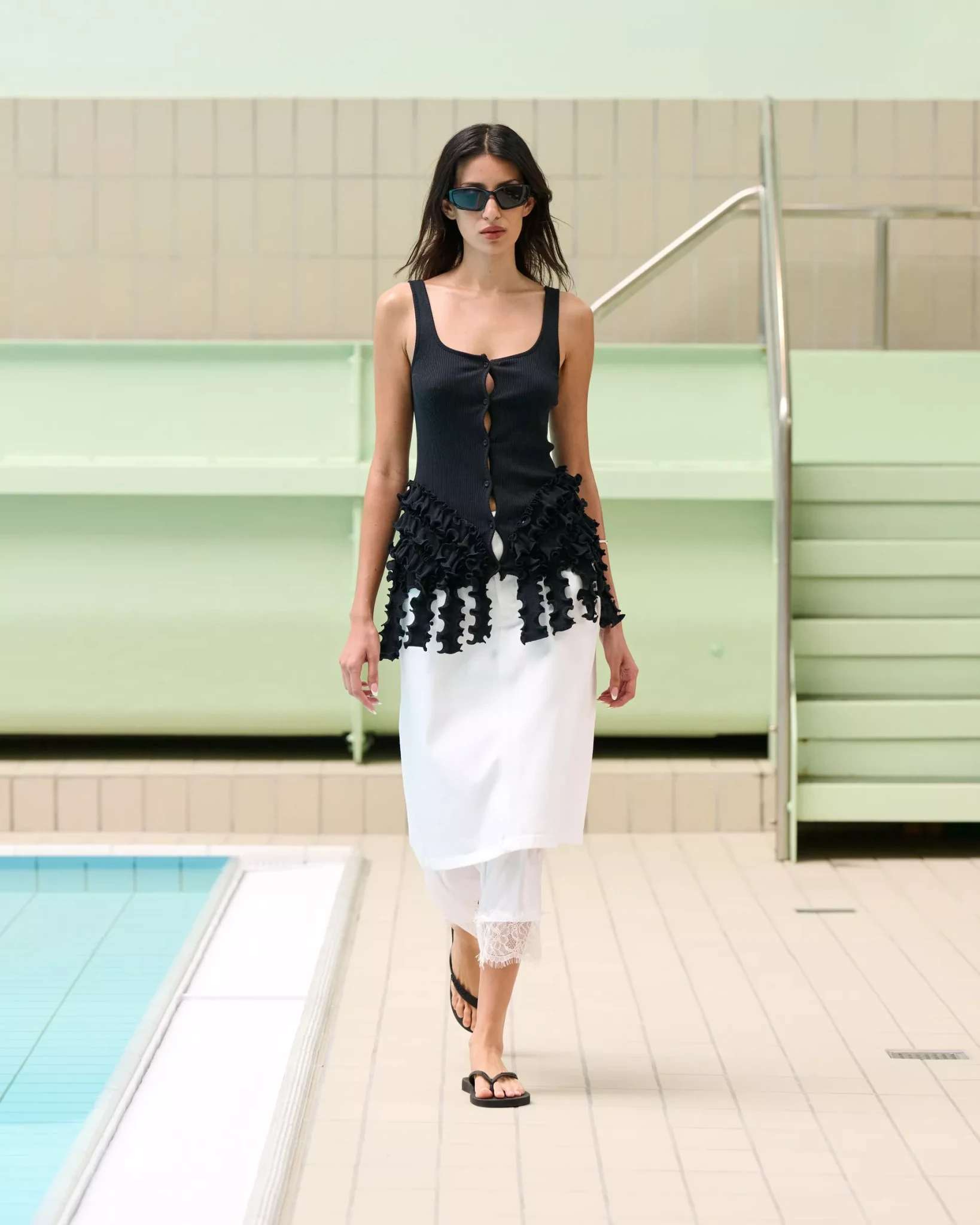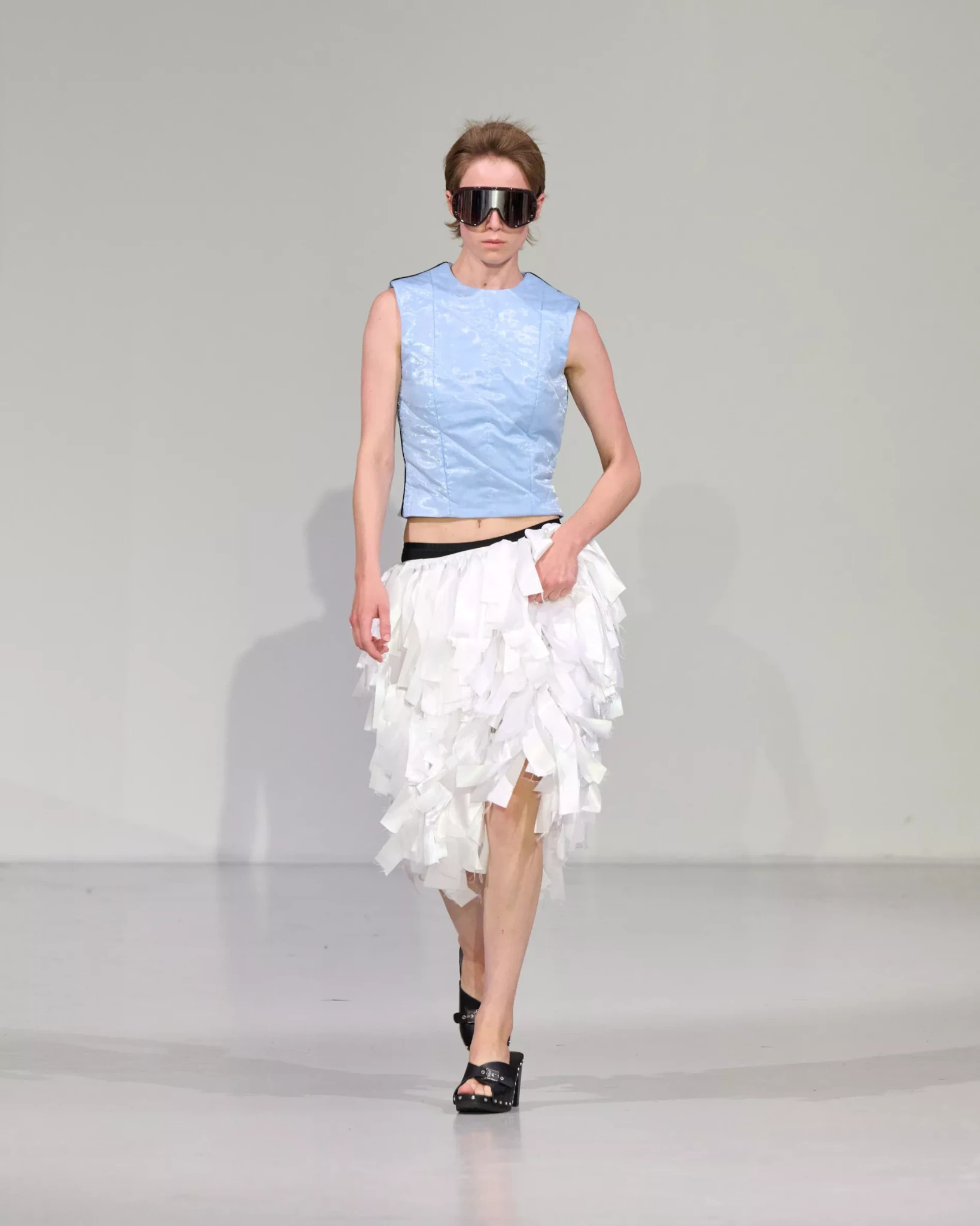 Τα κρόσσια αναβαθμίστηκαν ακόμα περισσότερο για την Spring/Summer 2026 season. Οι σχεδιαστές άφησαν στην άκρη τις λεπτές λεπτομέρειες με κρόσσια και προτίμησαν πιο χοντρές, κορδελοειδείς ίνες. Το OpéraSport δοκίμασε την τάση με ένα μαύρο top τύπου tank, διακοσμημένο με κρόσσια σαν ακορντεόν στο τελείωμα. Παράλληλα, η λευκή φούστα του Nicklas Skovgaard συνδύαζε δεκάδες ορθογώνια κομμάτια υφάσματος, ενώ το MKDT Studio παρουσίασε αρκετά φορέματα στολισμένα με κρόσσια που έμοιζαν με κορδέλες. Ετοιμαστείτε να υιοθετήσουμε αυτήν την τάση από το φετινό φθινόπωρο, απογειώνοντας ακόμα και τα πιο απλά σύνολα.