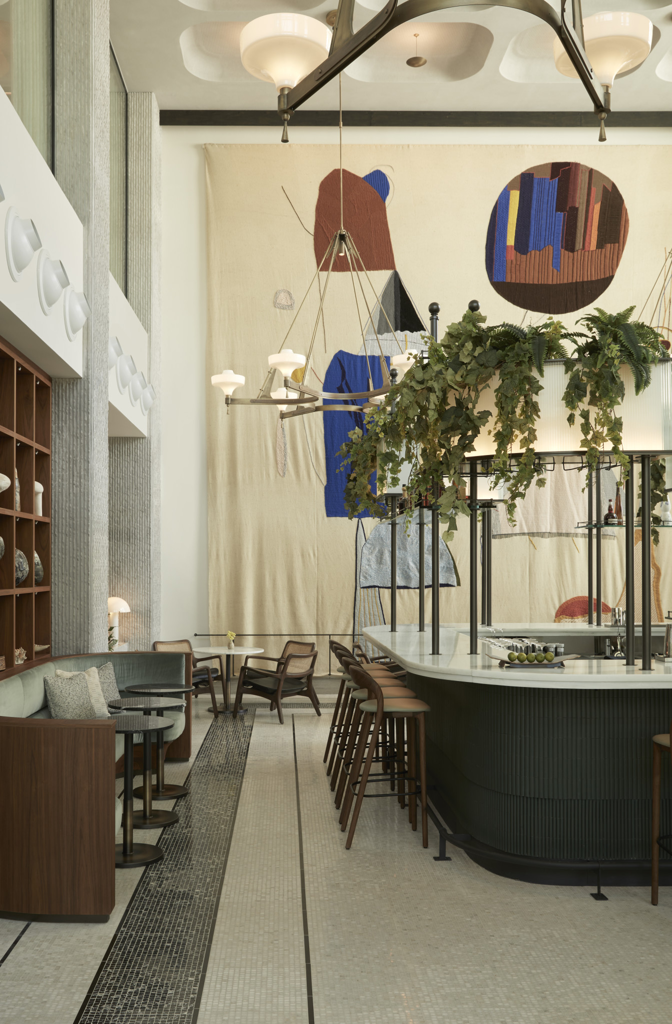 Η αρχιτεκτονική και το interior design ‒σε συνεργασία με το γραφείο Avroko‒ βασίζονται σε μια σύγχρονη ανάγνωση του mid-century μοντερνισμού, εμπλουτισμένη με αναφορές στην ελληνική καλλιτεχνική παράδοση. Η επιρροή του Γιάννη Μόραλη και της ομάδας «Αρμός» αποτυπώνεται διακριτικά, κυρίως στη γεωμετρία, τις αναλογίες και τη χρήση των υλικών. Μάρμαρο, ξύλο και φυσικές υφές συνδυάζονται με ανοιχτούς χώρους και διπλά ύψη, δημιουργώντας ένα περιβάλλον φωτεινό και ήρεμο, με μια αίσθηση αστικού καταφυγίου που απομακρύνεται από τον θόρυβο της πόλης χωρίς να αποκόπτεται από αυτήν.
