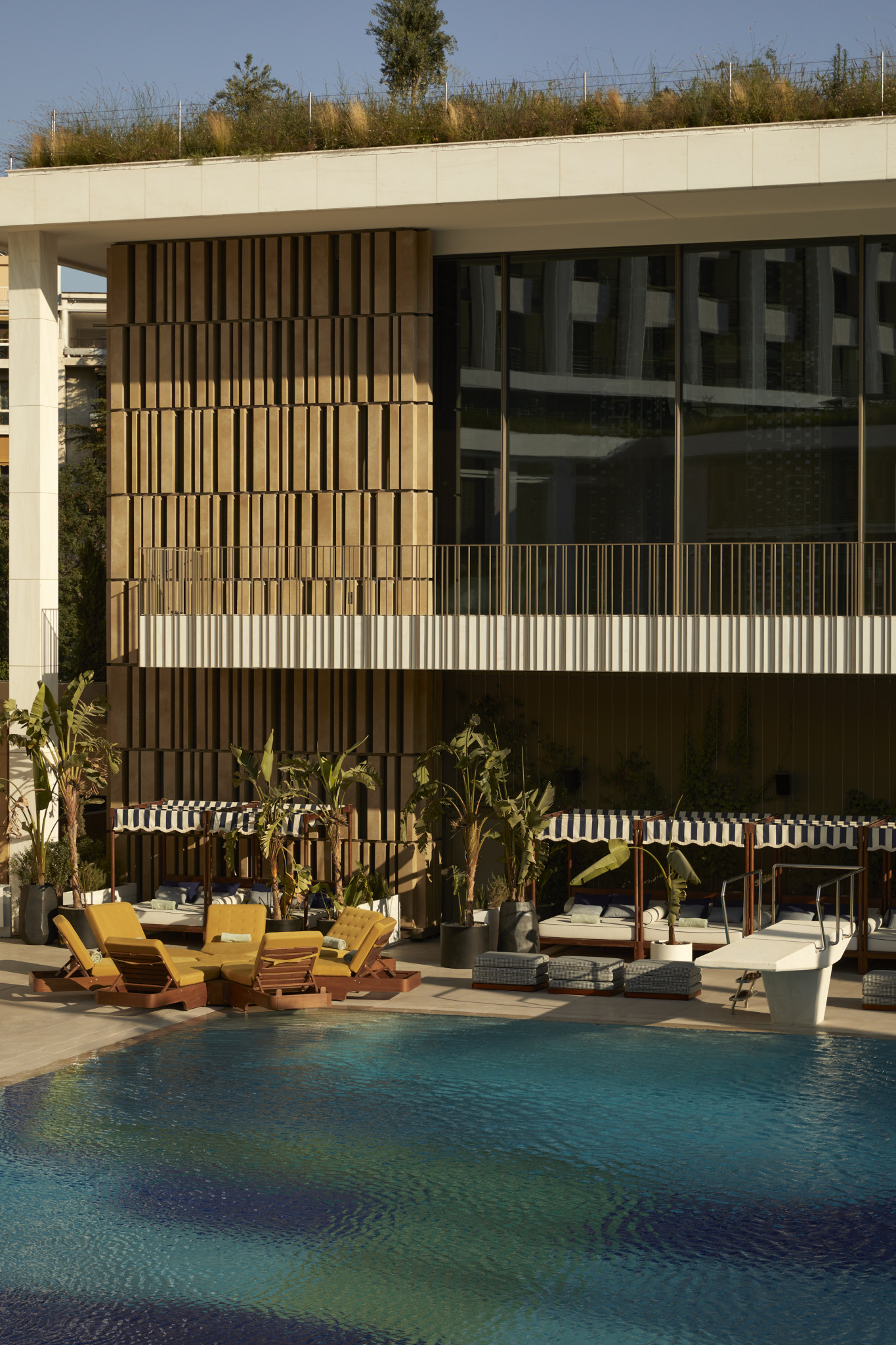 Το House of NYNN αναπτύσσεται σε τρία επίπεδα και τέσσερις βασικές ζώνες, οι οποίες ανταποκρίνονται σε διαφορετικές ανάγκες μέσα στη μέρα. Το Living Room λειτουργεί ως σημείο συνάντησης, με έμφαση στη γαστρονομία και την κοινωνική διάδραση, μεταβάλλοντας ρυθμό από το πρωί έως το βράδυ. Το Forum αποτελεί το co-working περιβάλλον του House, σχεδιασμένο με τρόπο που ενσωματώνει την εργασία σε ένα πιο ευέλικτο και ανθρώπινο πλαίσιο, με βιβλιοθήκες, meeting pods και χώρους αποφόρτισης. Στο Wellness Floor, η ευεξία προσεγγίζεται ολιστικά, μέσα από προγράμματα άσκησης και αποκατάστασης που εστιάζουν στη συνολική ισορροπία. Το Oasis, με την πισίνα του, λειτουργεί ως μια ήπια μετάβαση σε έναν πιο χαλαρό ρυθμό, προσφέροντας έναν εξωτερικό χώρο που δύσκολα συναντάται στο κέντρο της Αθήνας.