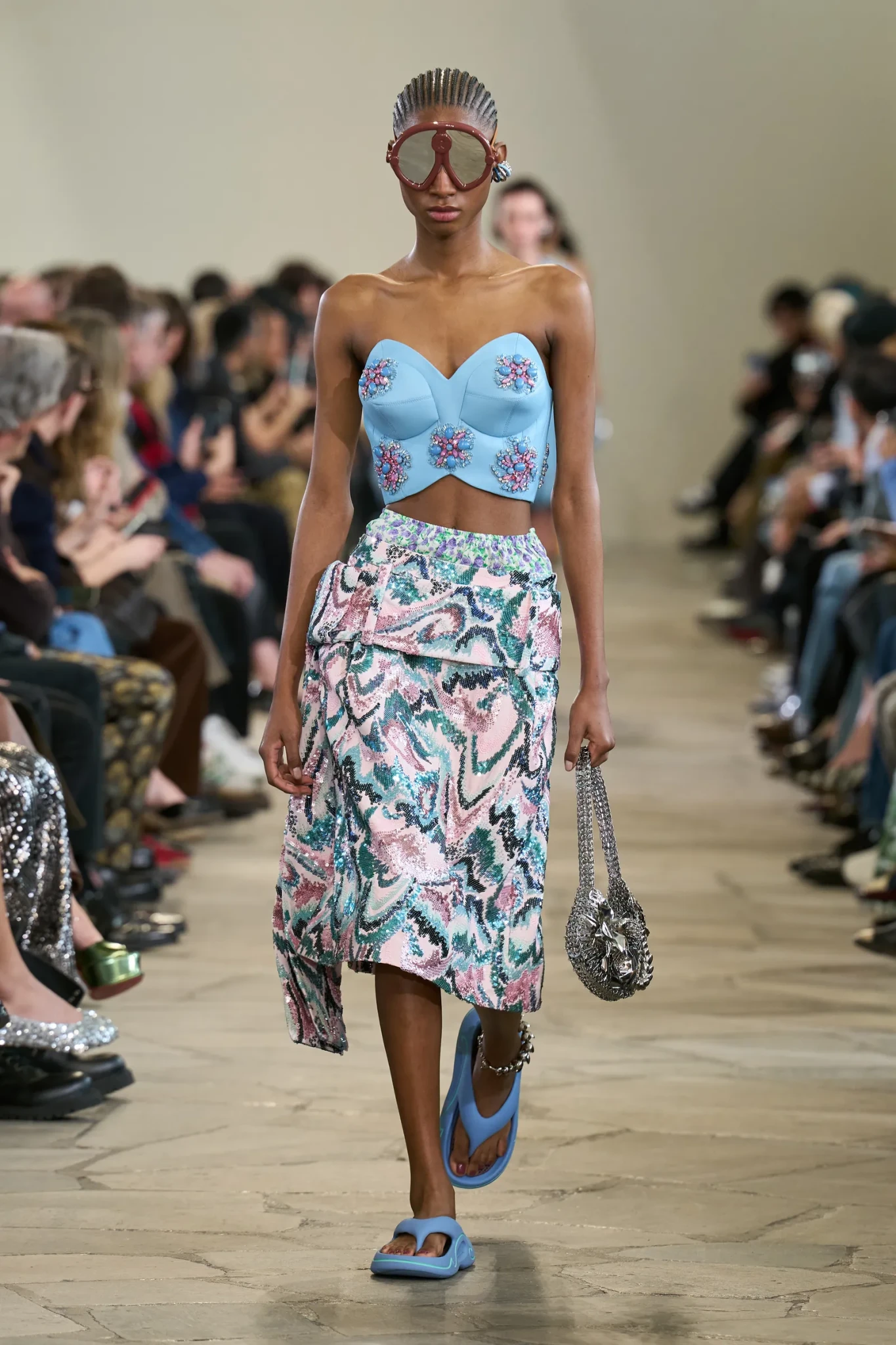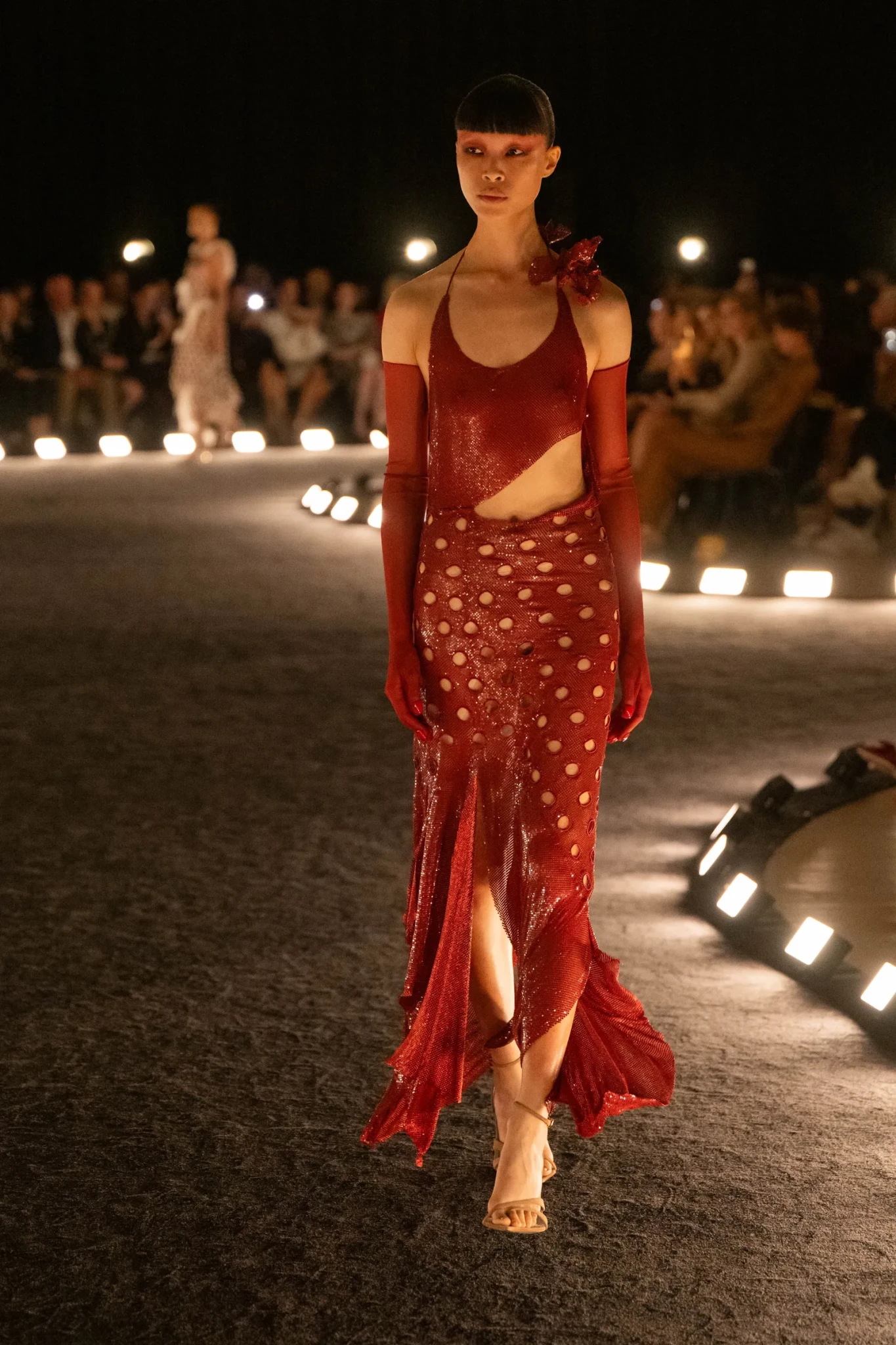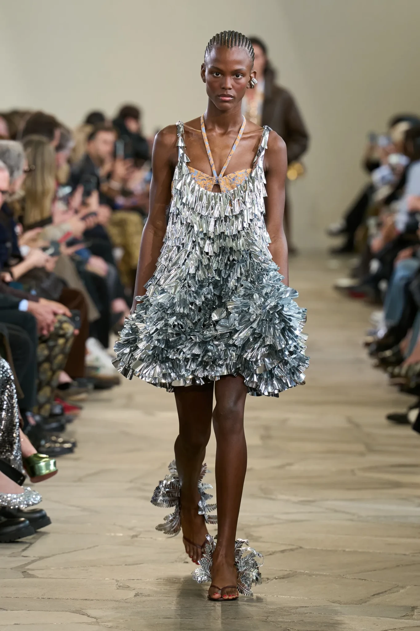 Στον Rabanne, ο Julien Dossena παρουσίασε μια συλλογή που απέπνεε αέρα απόδρασης. Στη γυάλινη αίθουσα της UNESCO, το φως του ήλιου εισχωρούσε στο χώρο, δίνοντας στα look μια διάφανη, καλοκαιρινή ποιότητα.