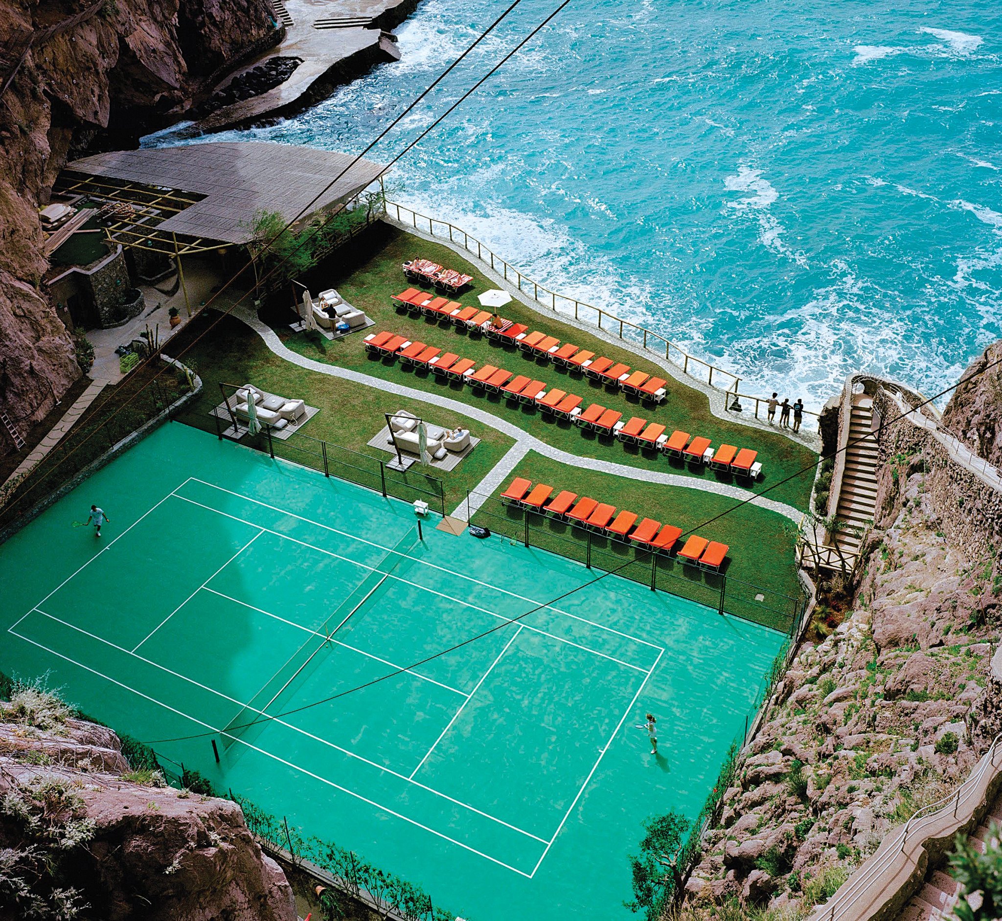 Στην καρδιά της κοσμοπολίτικης Ακτής Αμάλφι, το Il San Pietro di Positano φιλοξενεί ίσως το πιο ειδυλλιακό γήπεδο τένις της Ιταλίας - και όχι μόνο. Σχεδόν σμιλεμένο στον γκρεμό, το court αγκαλιάζεται από καταπράσινους κήπους και ατενίζει τα σμαραγδένια νερά της Μεσογείου. Η πρόσβαση σε αυτό γίνεται από τα σκαλοπάτια του ξενοδοχείου προς τη θάλασσα, χαρίζοντας στους επισκέπτες μια πρώτη γεύση από την κινηματογραφική ομορφιά που επικρατεί τριγύρω. Οι ήχοι από τα κύματα που «σκάνε» στους βράχους και η ανεπιτήδευτη γοητεία της περιοχής κάνουν κάθε παιχνίδι εδώ να μετατρέπεται σ’ ένα απίθανα διασκεδαστικό ταξίδι αισθήσεων.