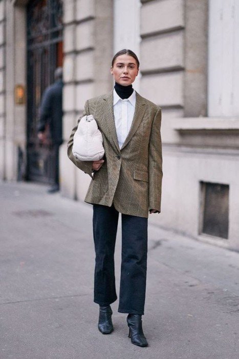 Ένας συνδυασμός, ο οποίος έχει διπλό ρόλο, καθώς μας χαρίσει στιλ αλλά παράλληλα προσθέτει και παραπάνω θερμότητα, κυρίως τις ημέρες με χαμηλότερες θερμοκρασίες. Προσθέστε μέσα από το λευκό σας πουκάμισο ένα roll neck και συνδυάστε τα με το τζιν παντελόνι σας κι ένα ζευγάρι μποτάκια. Μια εμφάνιση για όλες τις ώρες της ημέρας.