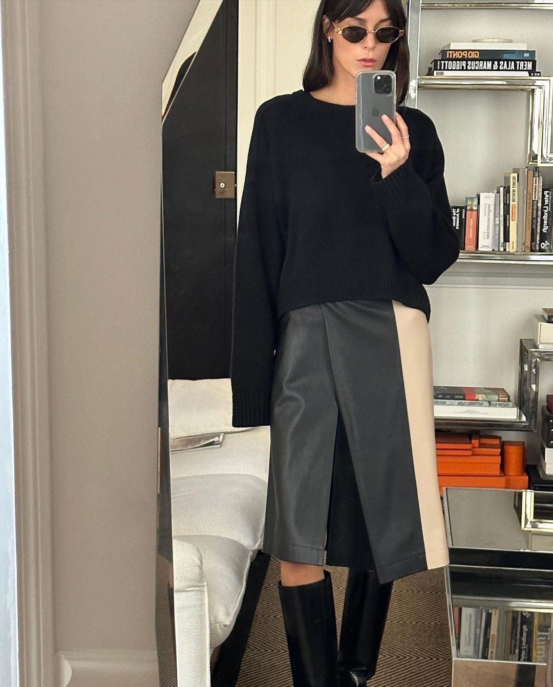 1. Knee high boots & Midi skirt