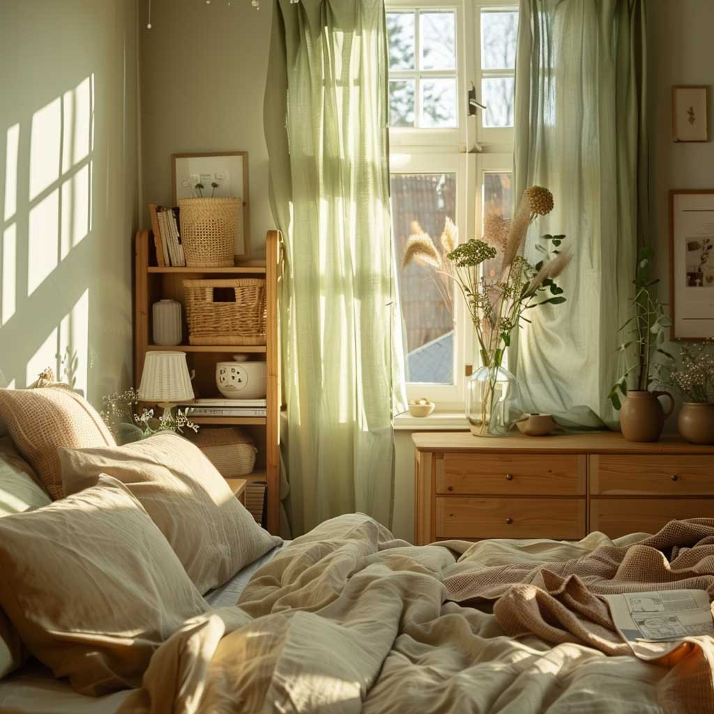 Ένα από τα πρώτα πράγματα που μπορούν να αλλάξουν την ατμόσφαιρα ενός υπνοδωματίου είναι τα υφάσματα. Τα βαριά παπλώματα, οι σκούρες κουρτίνες και τα πυκνά υλικά δίνουν τη θέση τους σε πιο ανάλαφρες επιλογές. Υφάσματα όπως το βαμβάκι και το λινό είναι ιδανικά για την εποχή, καθώς δημιουργούν μια πιο δροσερή και άνετη αίσθηση. Ταυτόχρονα, οι ανοιχτόχρωμες κουρτίνες επιτρέπουν στο φυσικό φως να μπαίνει στον χώρο, κάνοντας το δωμάτιο να φαίνεται μεγαλύτερο και πιο φωτεινό.