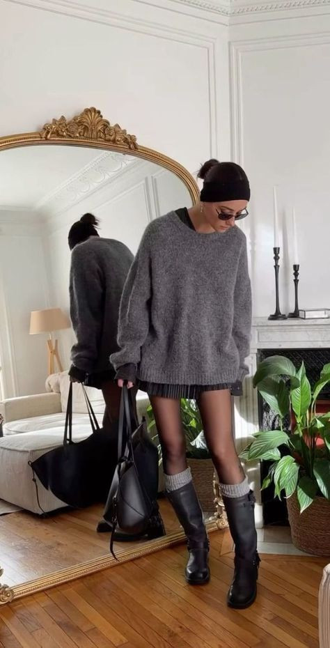 Riding Boots & Miniskirt & Sweater