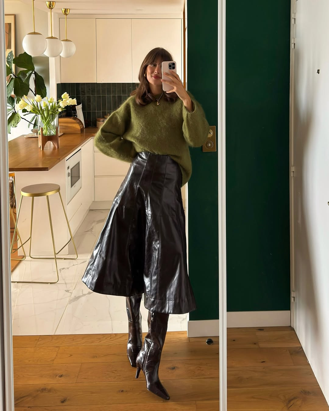 Leather Knee-High Boots & Knee-Length Skirt