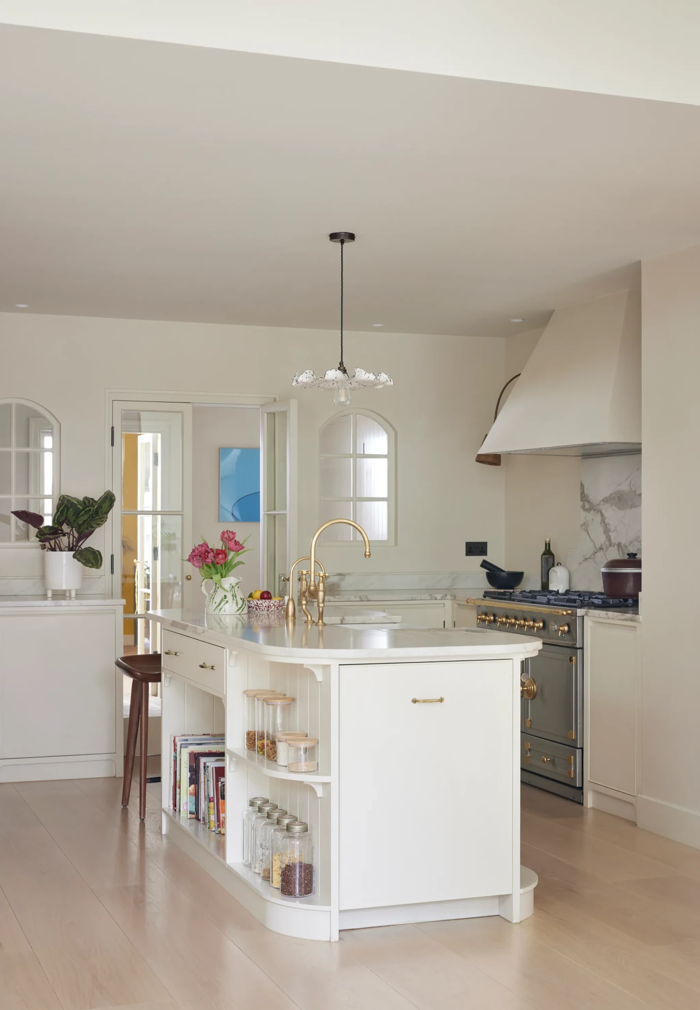 Στους υπόλοιπους κοινόχρηστους χώρους, οι λεπτομέρειες αποκαλύπτουν το κλασικό παρελθόν του σπιτιού. Για παράδειγμα, στην κουζίνα και την τραπεζαρία υπάρχουν ξύλινα δάπεδα, χειροποίητες βαμμένες επιφάνειες στα ντουλάπια και επιλεγμένα φωτιστικά, τα οποία ενισχύουν την αίσθηση της κομψότητας. Οι designers φρόντισαν έτσι ώστε κάθε υλικό να έχει τη δική του ιστορία. Τα λινά και τα βαμβακερά υφάσματα γεμίζουν με υφή τους καναπέδες και τις κουρτίνες, ενώ οι χειροποίητες λεπτομέρειες στα έπιπλα και τα διακοσμητικά δίνουν την αίσθηση ενός πιο προσωπικού στιλ.