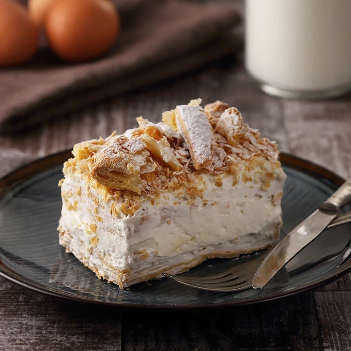 Το γλυκό των «χιλίων φύλλων» διαχρονικό και πάντα επίκαιρο από το 1954, παρουσιάζεται σε όλες του τις μορφές για κάθε περίσταση: από ατομικό γλύκισμα μέχρι τούρτα ή ακόμα και κορμό. Στον Κωνσταντινίδη η σύνθεση της πλούσιας και αφράτης κρέμας με το τραγανό φύλλο σφολιάτας ετοιμάζεται καθημερινά στο ανοιχτό παρασκευαστήριο κι έχει εξελιχθεί σε γλυκό-ορόσημο του ζαχαροπλαστείου και σημείο αναφοράς για την πόλη. Ένα κέρασμα που σχεδόν ποτέ δεν λείπει από τα σπίτια μας.