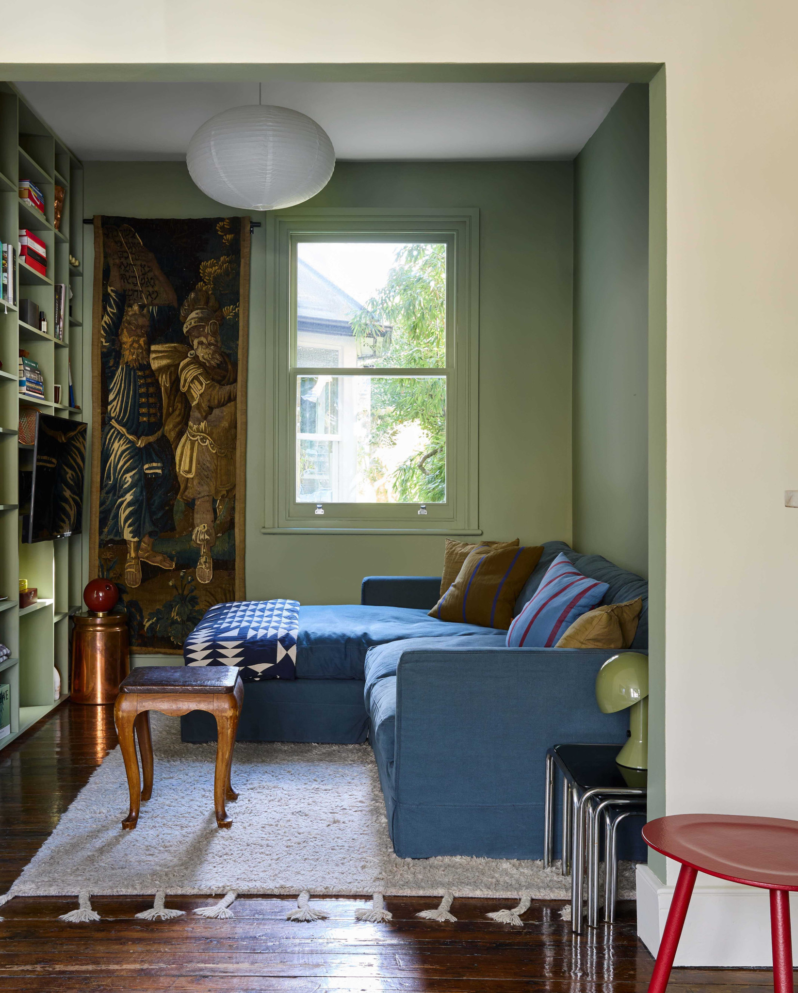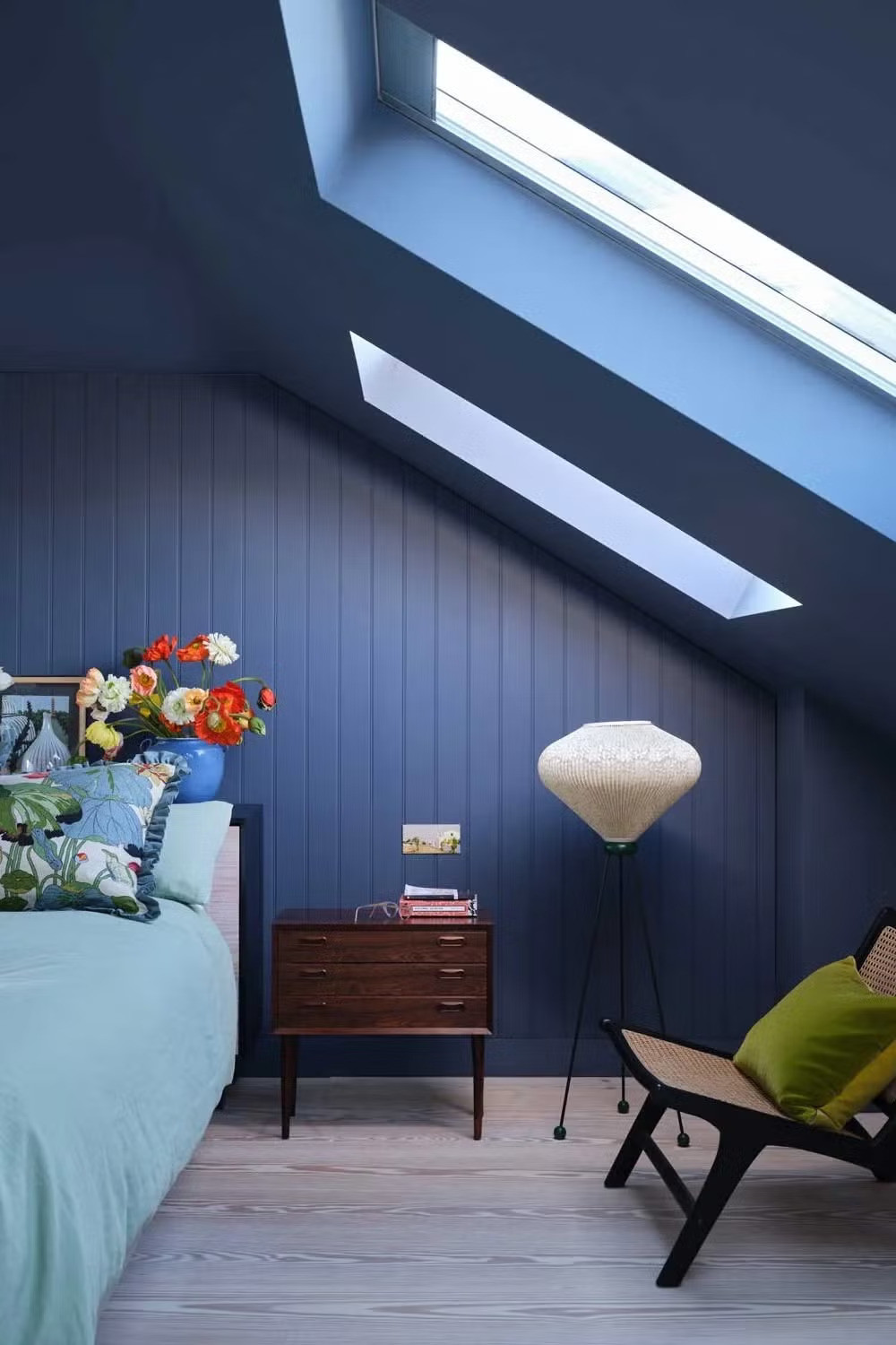 Αν και ακούγεται αντιφατικό, οι βαθιές αποχρώσεις μπορούν να λειτουργήσουν εξαιρετικά σε μικρούς χώρους. Δημιουργούν βάθος και κάνουν τα όρια του δωματίου λιγότερο εμφανή, ειδικά όταν συνδυάζονται με φωτεινά στοιχεία.