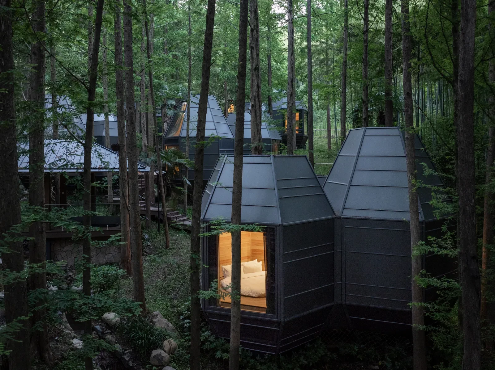 Στην καταπράσινη δασική έκταση του Dongmingshan, το ξενοδοχείο Senyu επανασυστήνει τη σχέση φιλοξενίας και φύσης μέσα από έναν σχεδιασμό που αντλεί έμπνευση από το ίδιο το τοπίο. Οι ανεξάρτητες ξύλινες καμπίνες, με σιλουέτα που θυμίζει κουκουνάρι, εντάσσονται διακριτικά στο ανάγλυφο του εδάφους, σεβόμενες τόσο τη μορφολογία του όσο και το φυσικό περιβάλλον. Το αρχιτεκτονικό γραφείο GLA δημιούργησε έναν χώρο που προσφέρει ηρεμία και προστασία, ενώ παράλληλα διατηρεί την απόλυτη σύνδεση με το δάσος.
