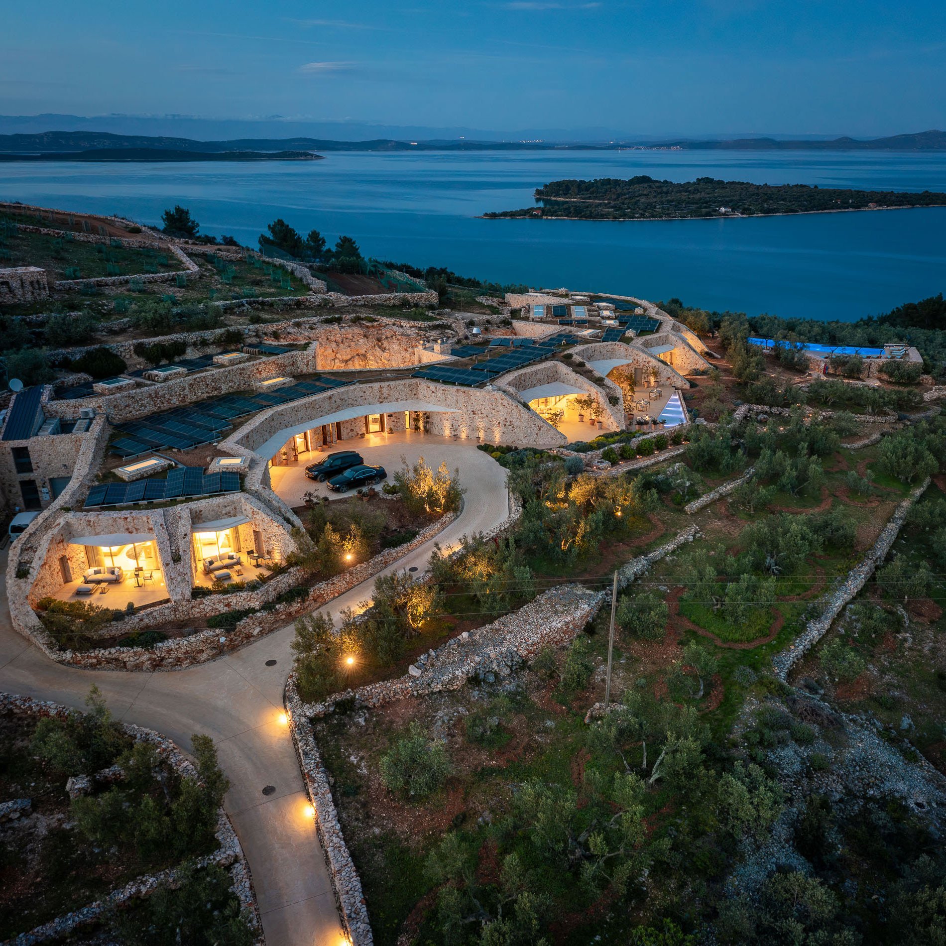 Η Villa Nai 3.3, κρυμμένη στο νησί Dugi Otok της Αδριατικής, προσφέρει μια μοναδική εμπειρία σύνδεσης με τη φύση, την ηρεμία και τη γαστρονομία. «Σκαμμένη» απευθείας στον λόφο, η κατοικία χρησιμοποιεί την πέτρα ως βασικό υλικό, μειώνοντας τις εκπομπές άνθρακα. Το κτίριο ενσωματώνεται σχεδόν αθέατα στο φυσικό τοπίο, περιτριγυρισμένο από έναν ελαιώνα 40.000 τετραγωνικών μέτρων, από τον οποίο παράγεται βραβευμένο ελαιόλαδο, ενώ η παραδοσιακή τεχνική ξηρολιθοδομής δημιουργεί οργανικές ταράτσες και τοίχους που αγκαλιάζουν το περιβάλλον. Η αρμονική ένταξη κτιρίου και φύσης δίνει στους επισκέπτες την αίσθηση ότι εξαφανίζονται στο τοπίο, απολαμβάνοντας απόλυτη ιδιωτικότητα.