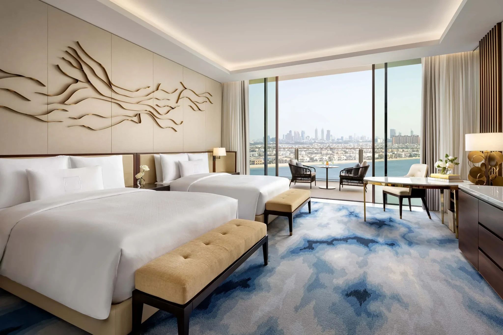 Στο κομβικό σημείο του φεγγαροειδούς Palm Jumeirah, το Atlantis The Royal ξεχωρίζει ως ορόσημο υπερπολυτελούς φιλοξενίας που ανανεώνει τον ουρανό του Dubai. Σχεδιασμένο από το Kohn Pedersen Fox Associates, το ξενοδοχείο εκτείνεται σε 43 ορόφους και αποτελείται από έξι διασυνδεδεμένους πύργους με εντυπωσιακές βεράντες και μια εντυπωσιακή skybridge που προσφέρει πανοραμική θέα στον Αραβικό Κόλπο. Ο σχεδιασμός του τονίζει τη σύνδεση εσωτερικού και εξωτερικού χώρου, με σκιασμένους υπαίθριους χώρους και εντυπωσιακές υδάτινες κατασκευές που δημιουργούν μια αίσθηση αρμονίας με το περιβάλλον. Στο εσωτερικό, η G.A Group έχει εμπνευστεί από την πλούσια ιστορία της περιοχής, ενσωματώνοντας στοιχεία που θυμίζουν νερό και έρημο.