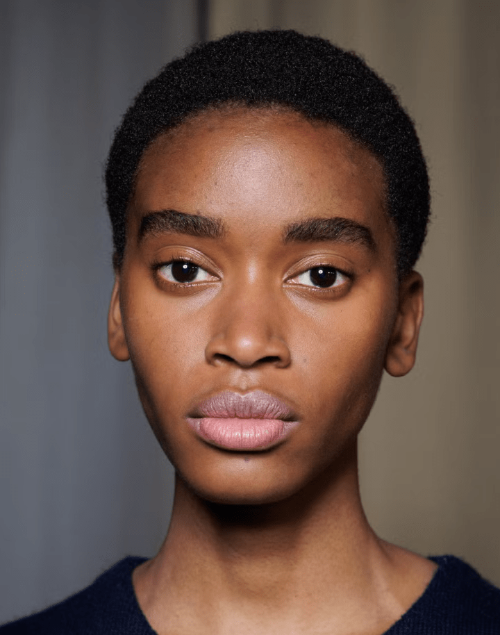 Σε συνδυασμό με τα nude χρώματα της δεκαετίας του '80 και το καφέ μολύβι χειλιών, η αισθητική ομορφιάς του Patrick McDowell ήταν ένα μάθημα αιθέριας επιδερμίδας. Η έμπνευση; «Το κόκκινο χαλί του δρόμου, η υψηλή μόδα συναντά το υψηλό δράμα, πολυτελές δέρμα με ένα μάτι από αγκαθωτό σύρμα», μοιράστηκε ο Dominic Skinner, διευθυντής καλλιτεχνικού μακιγιάζ της MAC Cosmetics.
