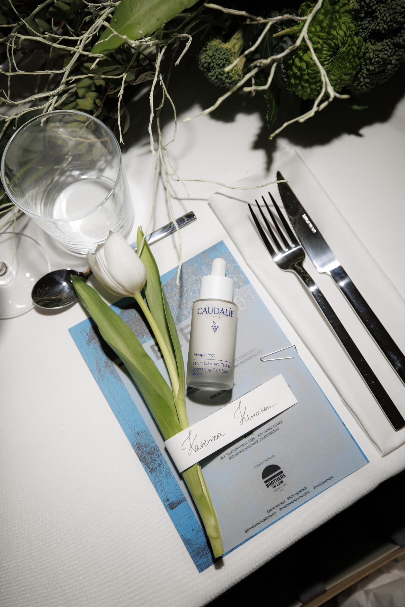 Κατά τη διάρκεια της βραδιάς, οι καλεσμένοι έλαβαν ένα specially curated goodie bag, το οποίο περιλάμβανε έργο της καλλιτέχνιδας, το signature porte-clés του AOS, καθώς και το Vinoperfect Brightening Dark Spot Serum της Caudalie, προσθέτοντας μια επιπλέον διάσταση φροντίδας και αισθητικής εμπειρίας.