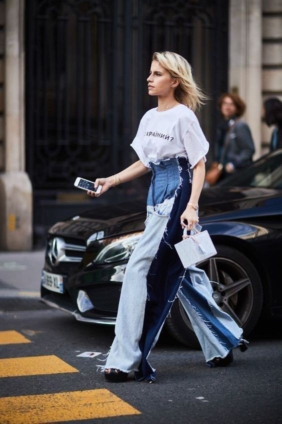 Το αγαπημένο '70s design της Victoria Beckham ήρθε για να κερδίσει και τη δική μας προσοχή και προτίμηση. Αν δεν το έχετε καταλάβει μέχρι στιγμής, αξίζει να σας ενημερώσουμε ότι τα patchwork denim pants θα είναι παντού για τους επόμενους μήνες. Θα τα συναντήσετε σε απλά σχέδια με διακριτικές λεπτομέρειες αλλά και σε avant garde items με διαφορετικές τζιν αποχρώσεις, τα οποία είναι έτοιμα να κλέψουν την παράσταση. Δε χρειάζεται να κάνετε πολλά για τα αναδείξετε, διότι έχουν τη δική τους έντονη «προσωπικότητα». Αρκεί απλά να τα συνδυάσετε μ' ένα λευκό t-shirt.