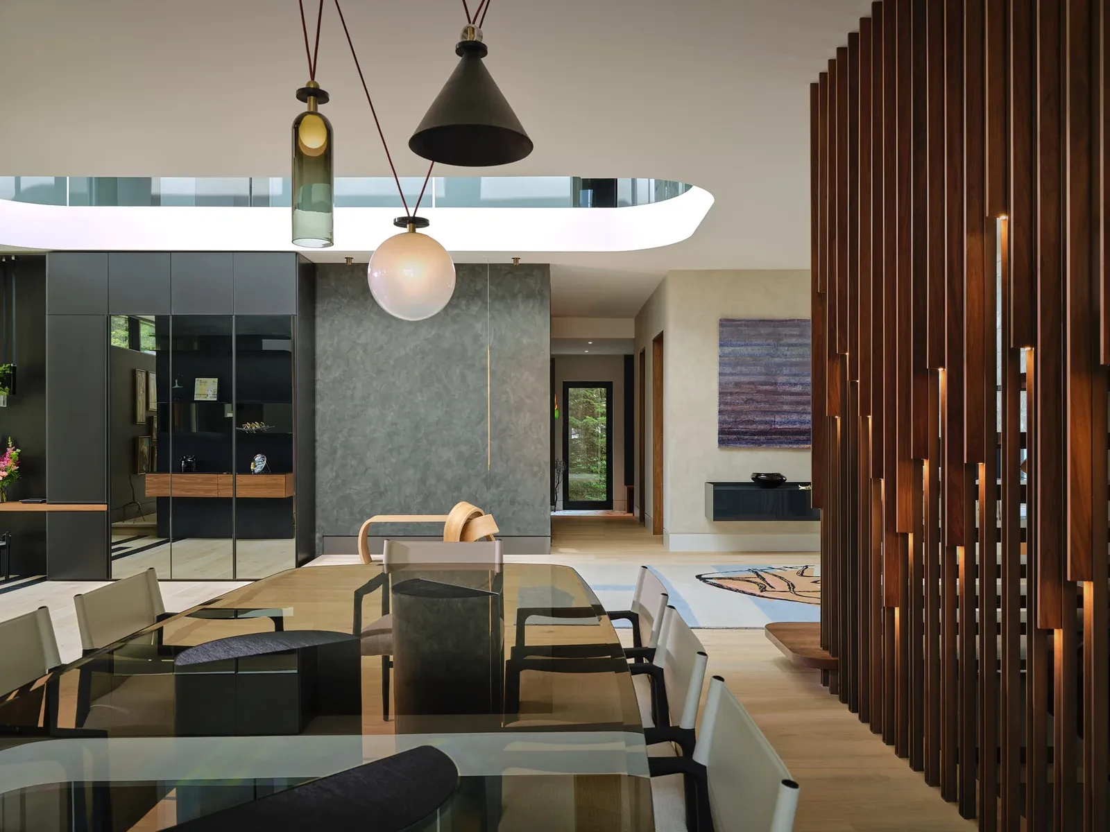 Μια παραθαλάσσια κατοικία στις όχθες της λίμνης Οντάριο δύσκολα θα συσχετιζόταν με τη μεσανατολική αρχιτεκτονική και την πολιτιστική κληρονομιά. Κι όμως, αυτό το καναδικό σπίτι αντλεί βαθιά έμπνευση από την Παλαιστίνη, τον τόπο καταγωγής της τετραμελούς οικογένειας που το κατοικεί. Η σύγχρονη, επιβλητική του ταυτότητα προέκυψε μέσα από τη δημιουργική σύμπραξη του σχεδιαστή Nathan Buhler από το BLDG Workshop, της interior designer Dragana Maznic με έδρα το Τορόντο και της κατασκευαστικής εταιρείας Easton Homes, με καθοριστική τη συμβολή των ίδιων των ιδιοκτητών, οι οποίοι συμμετείχαν ενεργά σε κάθε σχεδιαστική απόφαση.