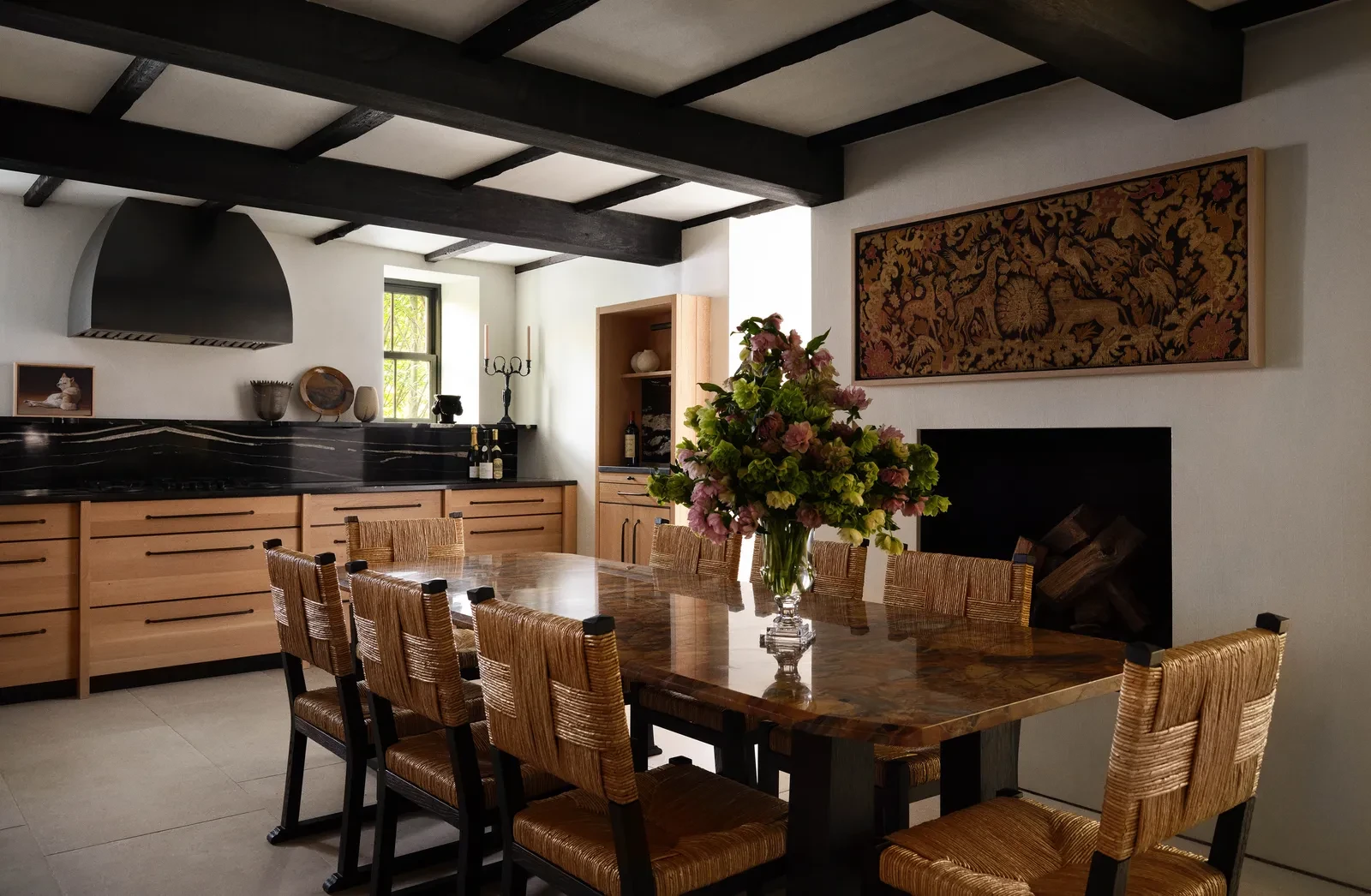 Στην καταπράσινη εξοχή της πολιτείας της Νέας Υόρκης, ο interior designer Matthew Fisher διαμόρφωσε ένα σπίτι που εκφράζει απόλυτα τη φιλοσοφία του για τον σύγχρονο τρόπο ζωής στην ύπαιθρο. Η κατοικία, ένα παραδοσιακό farmhouse με έντονα αρχιτεκτονικά στοιχεία, απέκτησε νέα ταυτότητα χωρίς να χάσει τον αυθεντικό της χαρακτήρα. Η βασική προσέγγιση του σχεδιασμού δεν στηρίχθηκε σε μια εντυπωσιακή μεταμόρφωση αλλά σε μια προσεκτική αποκατάσταση, όπου η ιστορία του σπιτιού παραμένει ορατή σε κάθε δωμάτιο. Οι ξύλινες δοκοί, τα παλιά πατώματα και οι πέτρινες επιφάνειες συνυπάρχουν με σύγχρονες παρεμβάσεις, δημιουργώντας μια ατμόσφαιρα που μοιάζει ανεπιτήδευτα εκλεπτυσμένη.