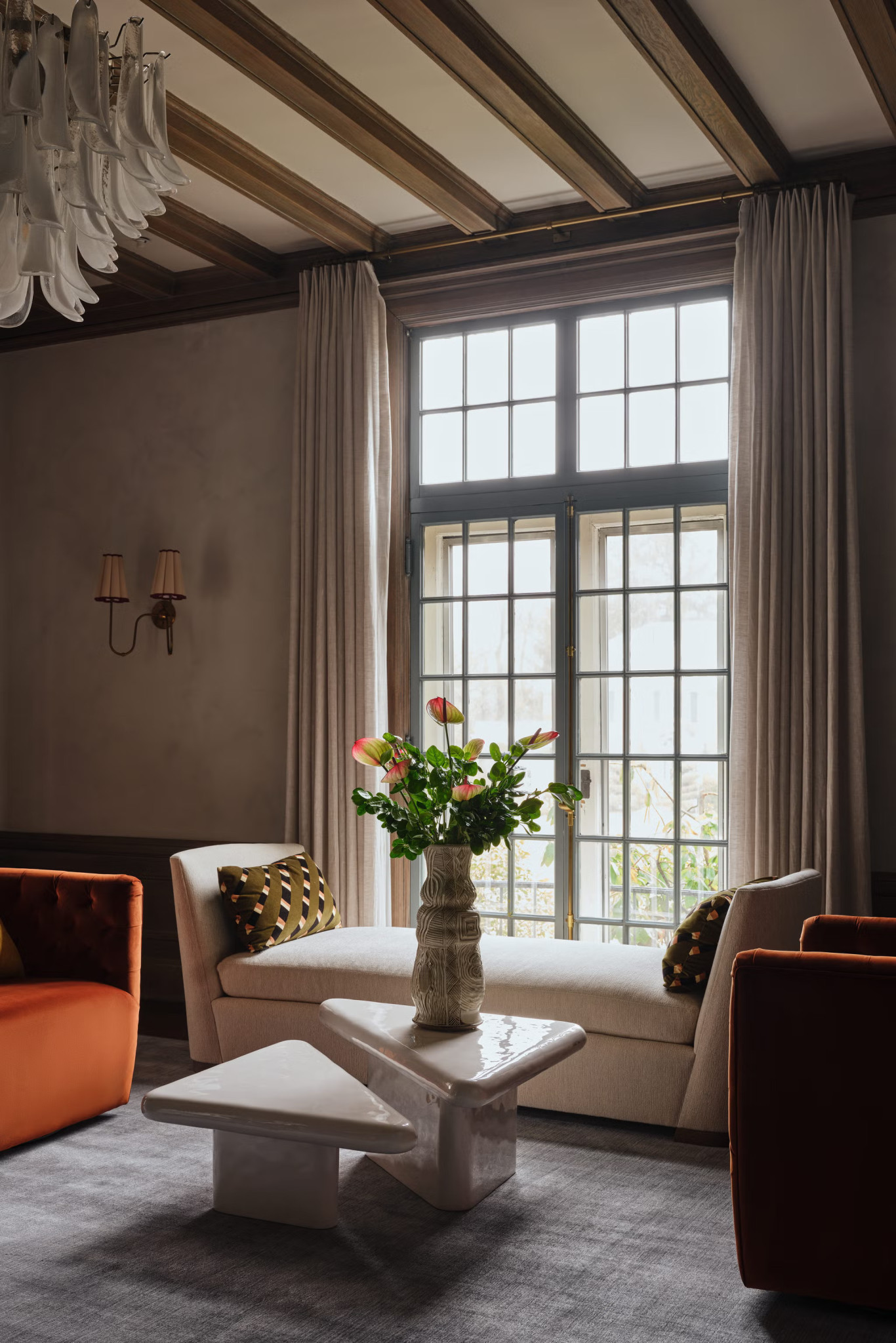 Παρότι η χρωματική παλέτα παραμένει συγκρατημένη, η χρήση διαφορετικών υφών δημιουργεί ενδιαφέρον και βάθος. Ξύλο, ύφασμα, μέταλλο και πέτρα συνδυάζονται με τρόπο που προσθέτει πολυπλοκότητα χωρίς να βαραίνει τον χώρο. Οι λεπτομέρειες, όπως τα φωτιστικά, τα διακοσμητικά αντικείμενα και τα έργα τέχνης, επιλέγονται με προσοχή, ενισχύοντας τη συνολική αισθητική. Τίποτα δεν φαίνεται τυχαίο, αλλά ούτε και υπερβολικά επιτηδευμένο. Η ισορροπία αυτή είναι που δίνει στο σπίτι τον διαχρονικό του χαρακτήρα.