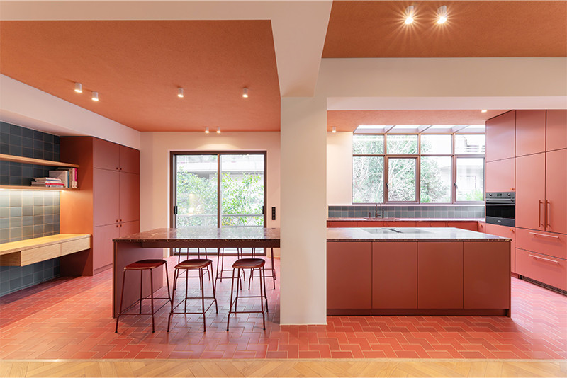 Ένα οροφοδιαμέρισμα σε πολυκατοικία του τέλους της δεκαετίας του 1950 στα Πατήσια γίνεται αντικείμενο μιας ανακαίνισης που ισορροπεί ανάμεσα στη μνήμη και την ανανέωση. Το KAN atelier διατηρεί τον αρχικό χαρακτήρα της κατοικίας, επανασχεδιάζοντας παράλληλα την κυκλοφορία γύρω από μια κεντρική κουζίνα, η οποία δημιουργεί μια ήπια διαδρομή που συνδέει τους χώρους διημέρευσης με τα υπνοδωμάτια. Το υπάρχον μωσαϊκό, τα ξύλινα δάπεδα και τα ξυλουργικά στοιχεία αποκαθίστανται και αναδεικνύονται, ώστε η πατίνα τους να συνομιλεί με νέες επεμβάσεις από πέτρα, μάρμαρο, ξύλο και γυαλί.