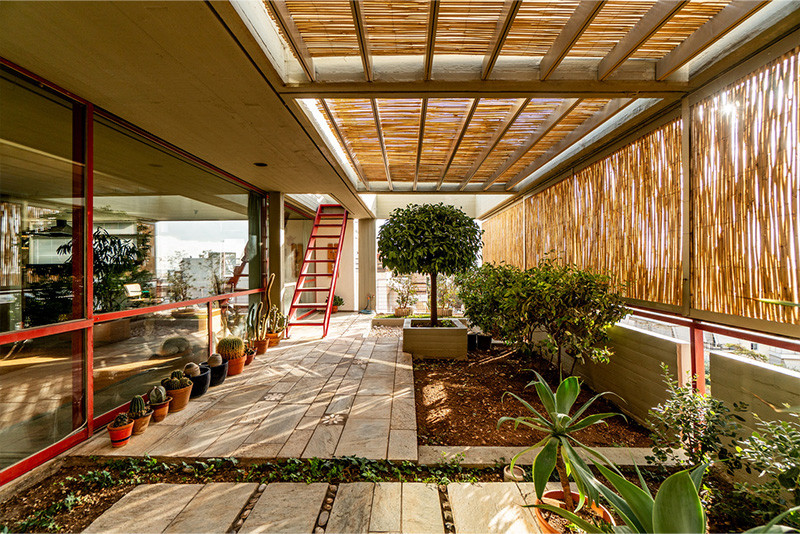 Το διαμέρισμα στον τέταρτο όροφο και τη σοφίτα σε πολυκατοικία στην Ηλιούπολη δίνει την αίσθηση μιας μικρής μονοκατοικία με κήπο. Σχεδιάστηκε το 1979 και κατασκευάστηκε μεταξύ 1980 και 1982 από τον αρχιτέκτονα Παντελή Χερουβείμ, ο οποίος εξακολουθεί να κατοικεί σε αυτό. Η αρχιτεκτονική του αντλεί έμπνευση από το μεσοπολεμικό σπίτι όπου γεννήθηκε και μεγάλωσε, με την αυλή και τα δωμάτια οργανωμένα γύρω από αυτήν, εκφρασμένα όμως μέσα από μια σύγχρονη -και για την εποχή της πρωτοποριακή- αρχιτεκτονική προσέγγιση.