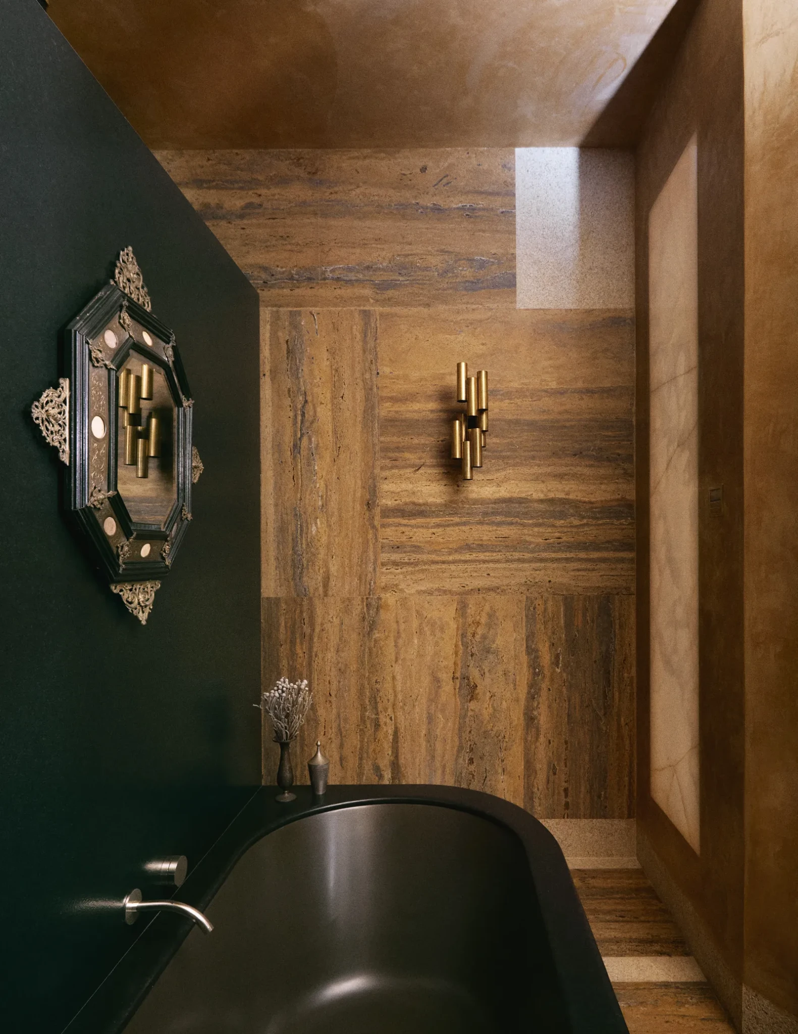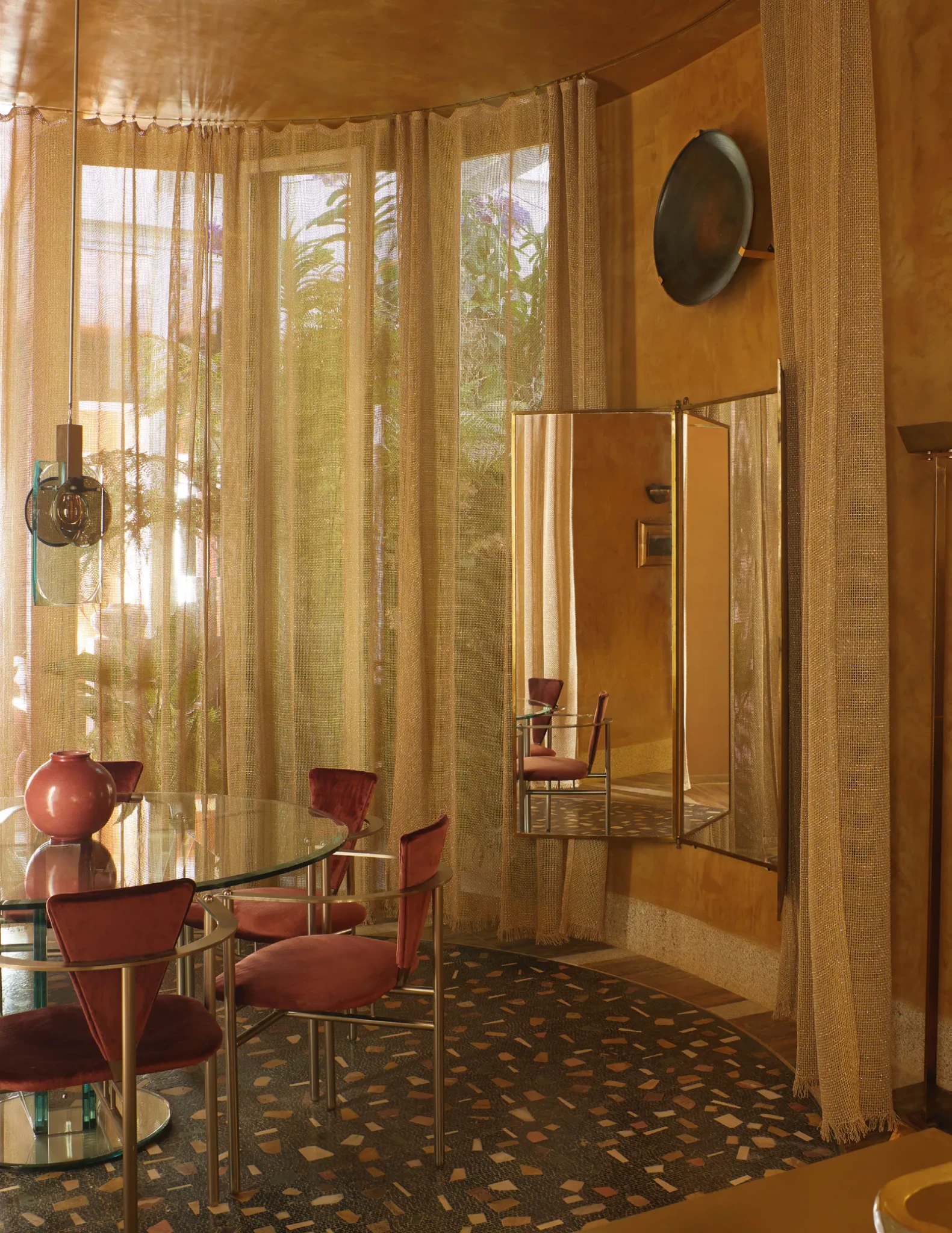 Μικρές οπτικές ψευδαισθήσεις πολλαπλασιάζουν τις προοπτικές και προσθέτουν δραματικότητα. Οι οροφές φαίνονται υψηλότερες, οι καθρέφτες δημιουργούν ψευδαίσθηση βάθους, ενώ το κεντρικό θερμοκήπιο λειτουργεί σαν θεατρική παύση στον χώρο. Κάθε λεπτομέρεια, από ένα χρυσό διακοσμητικό στοιχείο μέχρι έναν καθρέφτη, κρύβει μια αίσθηση θησαυρού, όπως ένα κομψό κοσμηματοθήκη που αποκαλύπτεται σιγά σιγά.