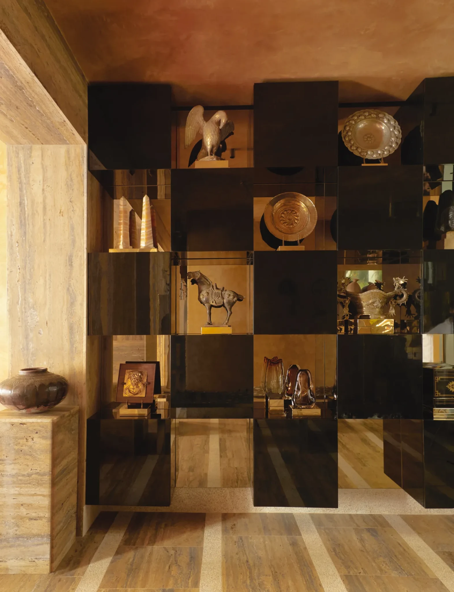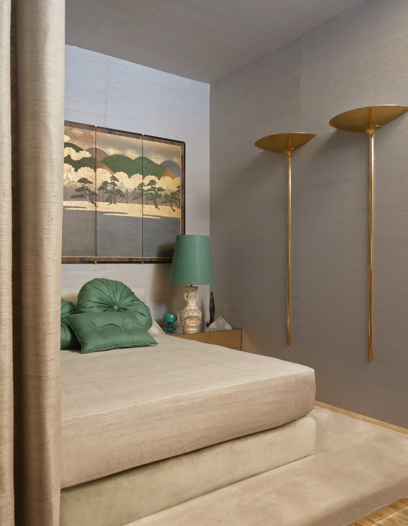 Η διακόσμηση αντλεί έμπνευση από διαφορετικές κουλτούρες και εποχές. Ένα εμπορικό πλοίο του 16ου αιώνα που διασχίζει τη Μεσόγειο, ένα κορεατικό βάζο από ιαπωνική αγορά, γαλλικές λάμπες με κινεζικά μοτίβα ή ένα bargueño ισπανικής έμπνευσης διακοσμημένο με μπαμπού και μικρές κανόες. Αυτή η πολυπολιτισμική προσέγγιση δίνει στο διαμέρισμα έναν αέρα μυστηρίου και διαρκούς πλούτου, δημιουργώντας μια συνεχή διάδραση Ανατολής και Δύσης.