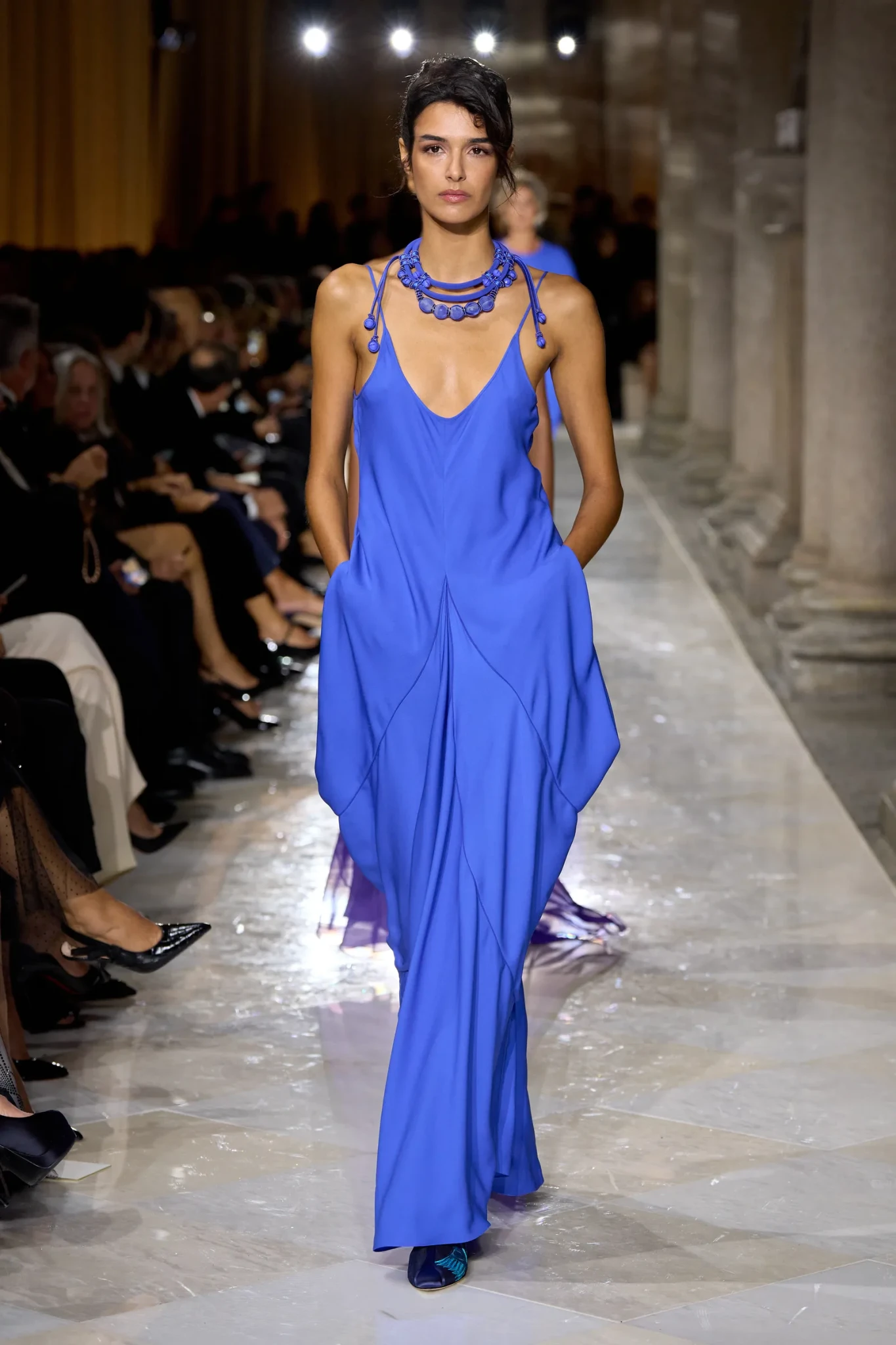 Όταν η Agnese Zogla εμφανίστηκε με το τελευταίο look -ένα γαλάζιο φόρεμα που έμοιαζε να αιχμαλωτίζει το χρώμα του ουρανού της Pantelleria- το κοινό σηκώθηκε όρθιο, χαρίζοντας παρατεταμένο χειροκρότημα, το οποίο ήταν ένα πραγματικός φόρος τιμής στον θρύλο της μόδας.