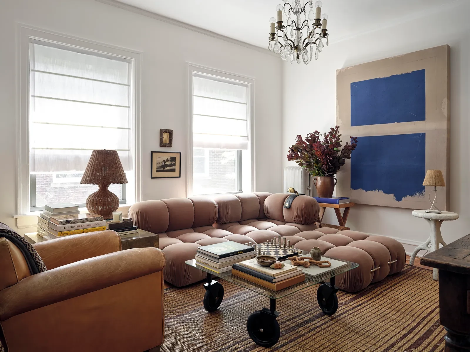 Κατά τη διάρκεια της πανδημίας, έπειτα από μια δεκαετία σε μικρότερο διαμέρισμα, ο Carollo εντόπισε τυχαία μια αγγελία στο Craigslist. Το νέο σπίτι τον κέρδισε αμέσως. Οι ανατολικοί προσανατολισμοί του χαρίζουν απλόχερο φως, ενώ οι γαλλικές μπαλκονόπορτες οδηγούν σε μια Juliet balcony που προσφέρει ανάσα και προοπτική. Η ανοιχτή κάτοψη έδωσε αμέσως τη δυνατότητα για ελεύθερη σύνθεση, επιτρέποντάς του να οργανώσει το εσωτερικό σαν σκηνικό που αλλάζει ανάλογα με τη διάθεση.