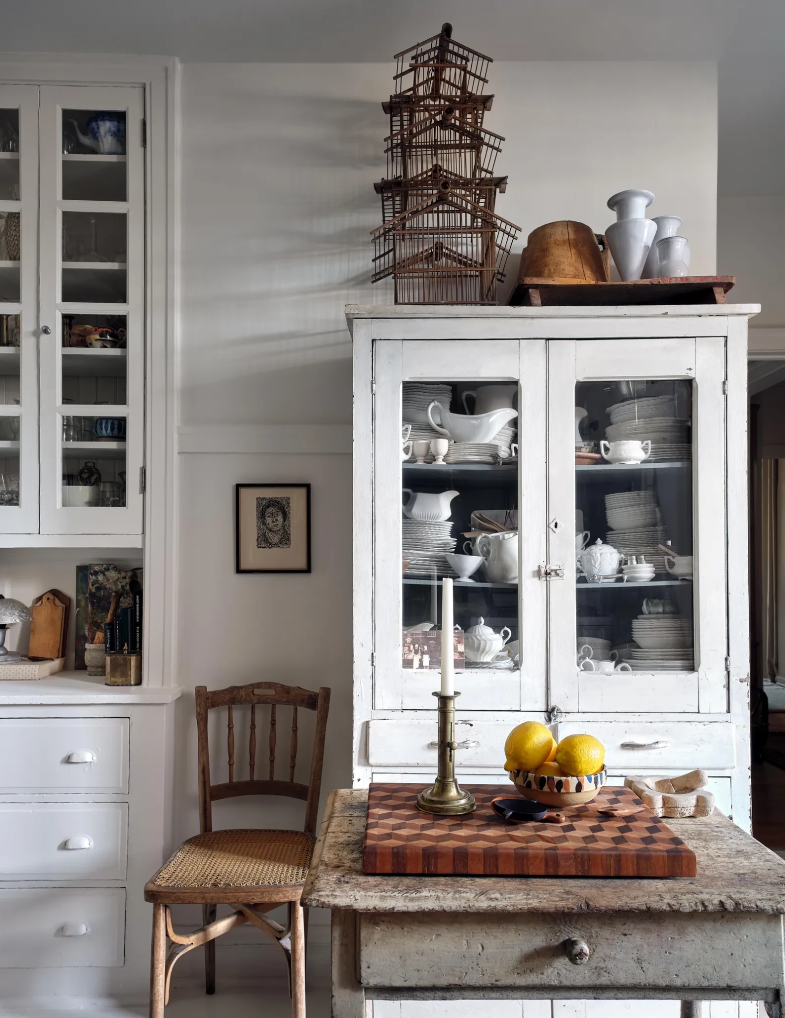 Ο ίδιος αραδέχεται ότι έχει εμμονή με τις καρέκλες και αυτό δεν είναι υπερβολή. Σε μια φάση της ζωής του, είχαν συγκεντρωθεί πάνω από είκοσι έξι διαφορετικές καρέκλες στο διαμέρισμα του. Από εκλεπτυσμένα κομμάτια Louis Philippe έως χειροποίητες brutalist δημιουργίες, όλα βρίσκουν τρόπο να συνυπάρχουν. Η εναλλαγή της διάταξης είναι συνεχής, σχεδόν ρυθμική, καθώς ο Carollo αλλάζει θέσεις στα έπιπλα όπως ένας σκηνοθέτης που προετοιμάζει την επόμενη σκηνή.