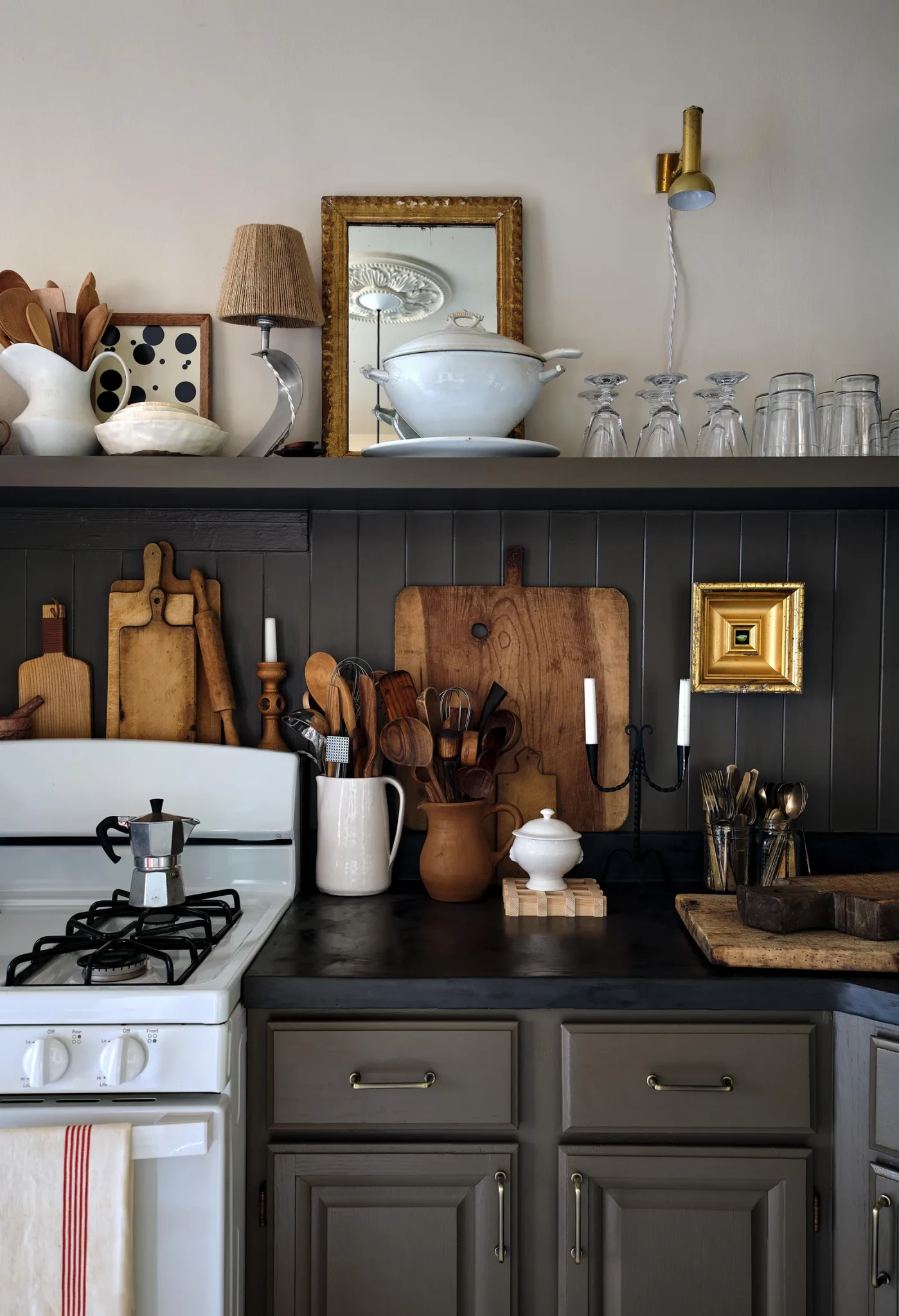 Παρότι ο χώρος είναι ενοικιαζόμενος, δεν δίστασε να τον μεταμορφώσει. Έβαψε τους τοίχους σε θερμή λευκή απόχρωση, αντικατέστησε φωτιστικά, άλλαξε πάγκους και πρόσθεσε δικές του λεπτομέρειες. Κάθε επιφάνεια φέρει πλέον την προσωπική του σφραγίδα, αποδεικνύοντας ότι η προσωρινότητα δεν αποτελεί εμπόδιο για την αυθεντική δημιουργία.