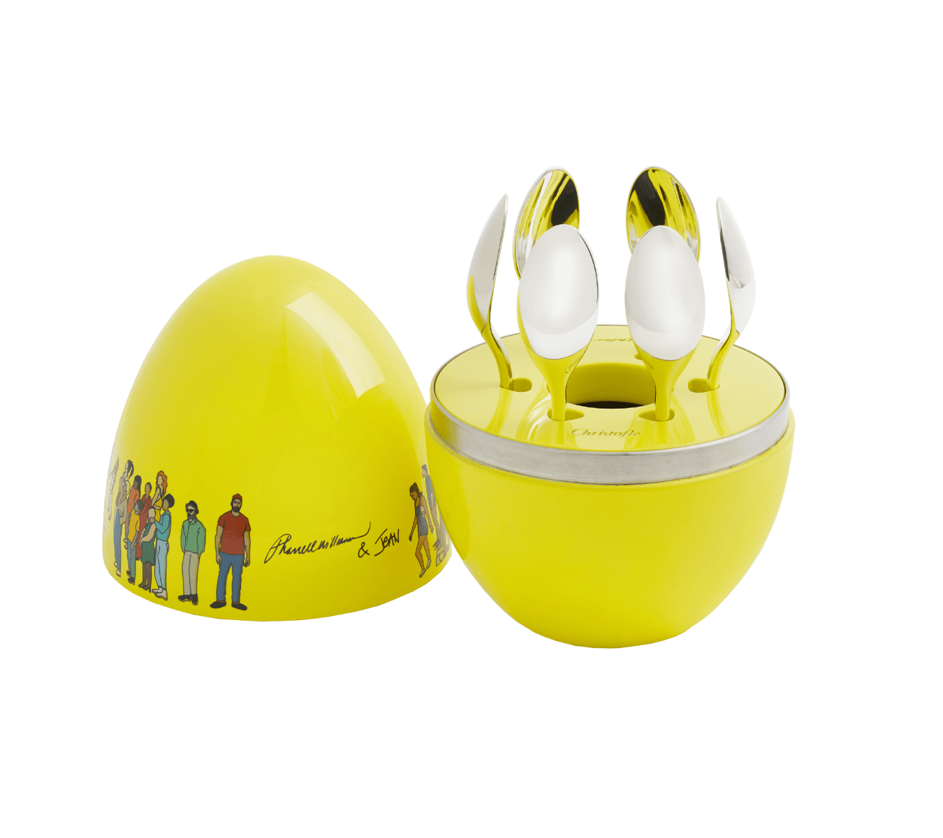 Το 2015, η Christofle (Παύλου Μελά 9) παρουσίασε για πρώτη φορά τη MOOD collection -μια συλλογή από θήκες για μαχαιροπίρουνα σε σχήμα αυγού. Γρήγορα, η συγκεκριμένη σειρά έγινε most-wanted από κάθε λάτρη του interior design, ενώ ένα από τα πιο πρόσφατα αυγά που συμπεριλαμβάνεται στη Mood collection, το "MOOD Set of 6 Espresso Spoons by Pharrell Williams and Jean Imbert", είναι αυτό στο οποίο αξίζει να επενδύσετε το φετινό Πάσχα. Πρόκειται για τη συνεργασία του Pharrell Williams με τον καταξιωμένο Γάλλο chef Jean Imbert. Ο σπουδαίος μουσικός χάρισε updated χαρακτήρα στο κλασικό αυγό, αποτυπώνοντας επάνω τις αξίες της φιλίας και της δημιουργικότητας, με τη θήκη να ξεχωρίζει για τη fluo κίτρινη απόχρωσή του. Φυσικά, οι Mood επιλογές είναι πολλές -όλες με απίστευτο design, που μπορεί να ταιριάξει σε κάθε σύγχρονη κατοικία.