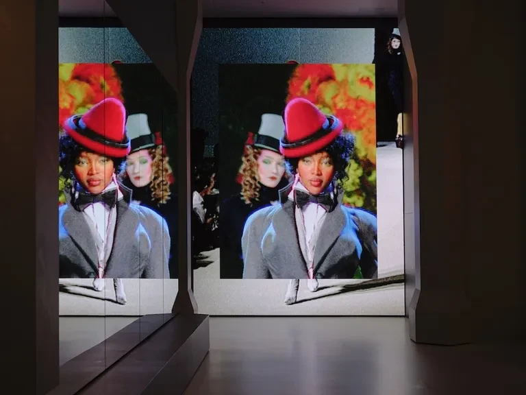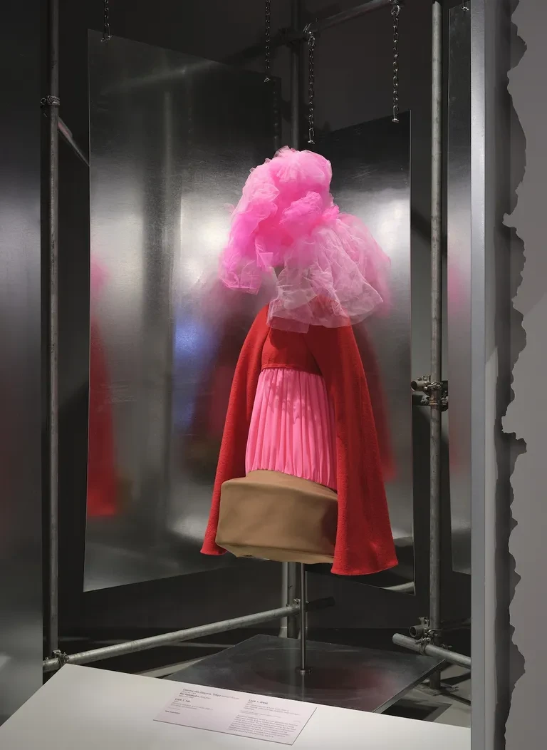 Η σκηνογραφία της έκθεσης αντανακλά αυτή τη διπλή ενέργεια: άλλοτε πλούσια και βυθιστική, όπως μια σύγχρονη εκδοχή σαλονιού του 18ου αιώνα, και άλλοτε αυστηρή και industrial, με αλουμίνια, σκυρόδεμα και οθόνες που διατρέχουν τους διαδρόμους. Τα looks του Comme des Garçons ντύθηκαν από την ειδική ομάδα του οίκου που ταξίδεψε από την Ιαπωνία, ενώ τα σύνολα της Westwood συνοδεύονται από υποδήματα και εντυπωσιακά headpieces, πολλά από τον μακροχρόνιο συνεργάτη της, Stephen Jones. Αρχειακό υλικό, έντυπα, βίντεο και φωτογραφίες συμπληρώνουν την αφήγηση, χαρτογραφώντας το εύρος και την εξέλιξη των δύο δημιουργών.